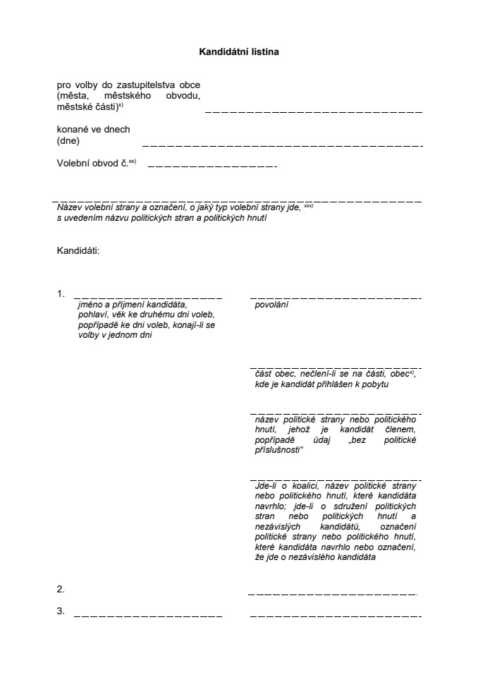 Kandidátní listiny se podávají registračnímu úřadu do úterý 19. července 2022 do 16.00 hodin.