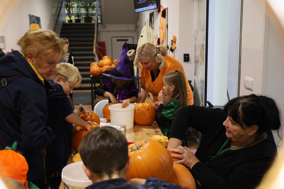 Děkujeme zaměstnancům za skvělou akci! Kdo včera nedorazil na strašidelný workshop na náš úřad, může jen litovat. Tuto úžasnou akci pořádali naši kolegové v čele s paní místostarostkou Filipinskou, kteří pro jednou upustili pero, odsedli od počítačů a udělali úžasně děsivé odpoledne nejen pro malé, ale i pro velké. Budova našeho úřadu se zahalila do mlhy, strašidelné dýně lemovaly vstup, a i naši kolegové se všichni bez výjimek oblékli do halloweenských převleků. Kromě vyřezávání dýně bylo možné si vyrobit dýně z látky, špejlová strašidélka, vystřihovánky, lampičky a mnoho dalšího. Děkujeme za extrémně hojnou návštěvnost, moc jsme si to s Vámi užili. Děkujeme všem kolegům, protože jejich nadšení a zapojení bylo opravdu neskutečné.