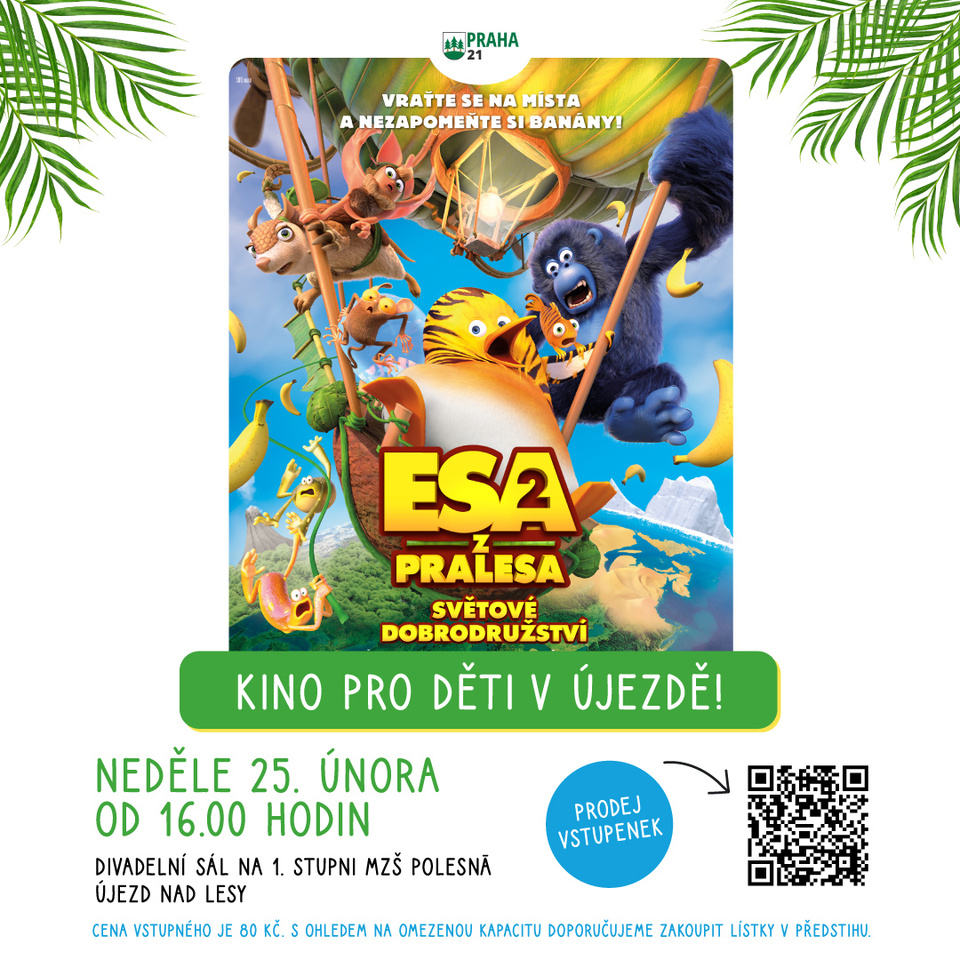 Dne 25. února 2024 od 16:00 Vás zveme na filmový zážitek pro celou rodinu - "Esa z pralesa 2: Světové dobrodružství"! Film se bude promítat v divadelním sále 1. stupně MZŠ.