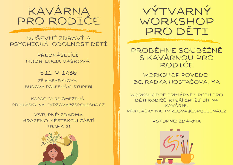 Zatímco Vy budete na přednášce, děti se mohou zapojit do výtvarného workshopu zdarma. Budete tak mít zajištěnou péči o Vaše děti!