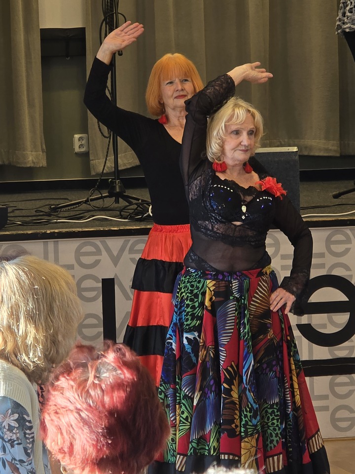 Na úvod přítomné přivítal pan starosta Michal Hazdra a paní místostarostka Alena Motejlová. Poté následovalo překvapení v podobě taneční skupiny „Karolinky“ z Prahy 8. Dámy v seniorském věku rozvířily sál tancem s vějíři a hedvábnými šátky. Všechna čest jejich kondici. Po krátké pauze začala hrát a zpívat kapela Akceband a první tanečníci z řad seniorů přišli ihned na parket. Byl čas i na „kus“ řeči a popovídání si při kávě, vínečku a pohoštění. Dobrá nálada a radost ze setkání provázela návštěvníky i pořadatele po celé odpoledne, které uteklo „jako voda“.