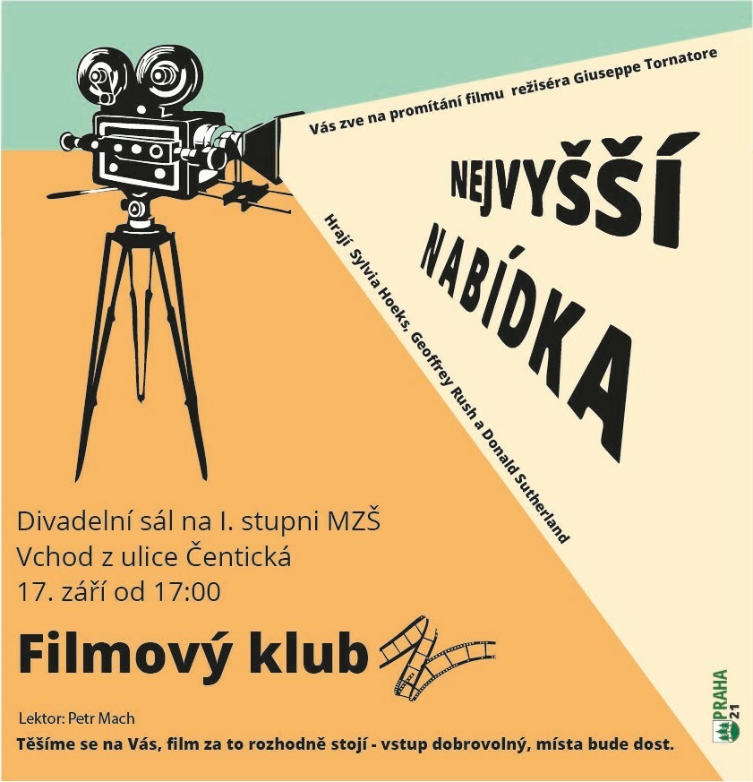 Filmový klub Vás srdečně zve na podzimní promítání výjimečného snímku Nejvyšší nabídka režiséra Giuseppe Tornatore, který si v roce 2013 vysloužil ocenění za nejlepší film, režii, scénář i hudbu – tu složil legendární Ennio Morricone.