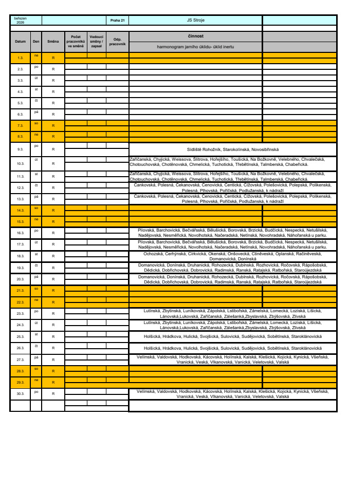 Aby to šlo technice pěkně od ruky, budeme rádi, když v době úklidu necháte ulice pokud možno volné a nebudete parkovat na vozovce🚘.