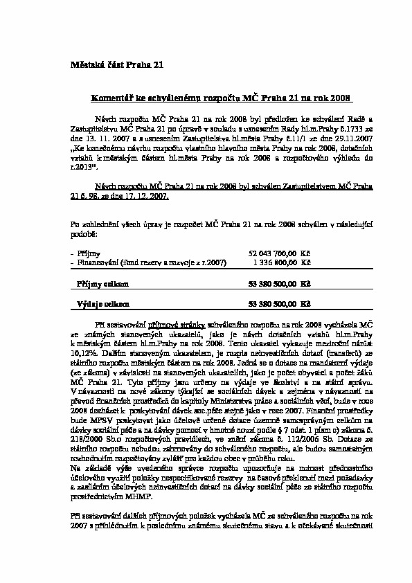Poslední změna: 26. 5. 2014, 15:05:53, velikost: 155.5 KBKomentář k rozpočtu městské části Praha 21 za rok 2008.doc