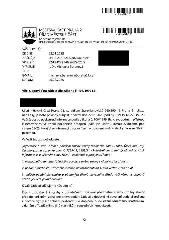 Poslední změna: 14. 2. 2025, 10:45:11, velikost: 51.68 KB005 - 2025_01_22 -informace_o_řízení_ve_vztahu_ke_konkrétnímu_pozemku_Redigováno.pdf