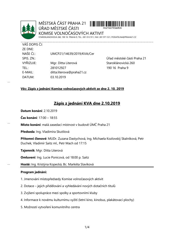 el. podatelna: podatelna@praha21.cz