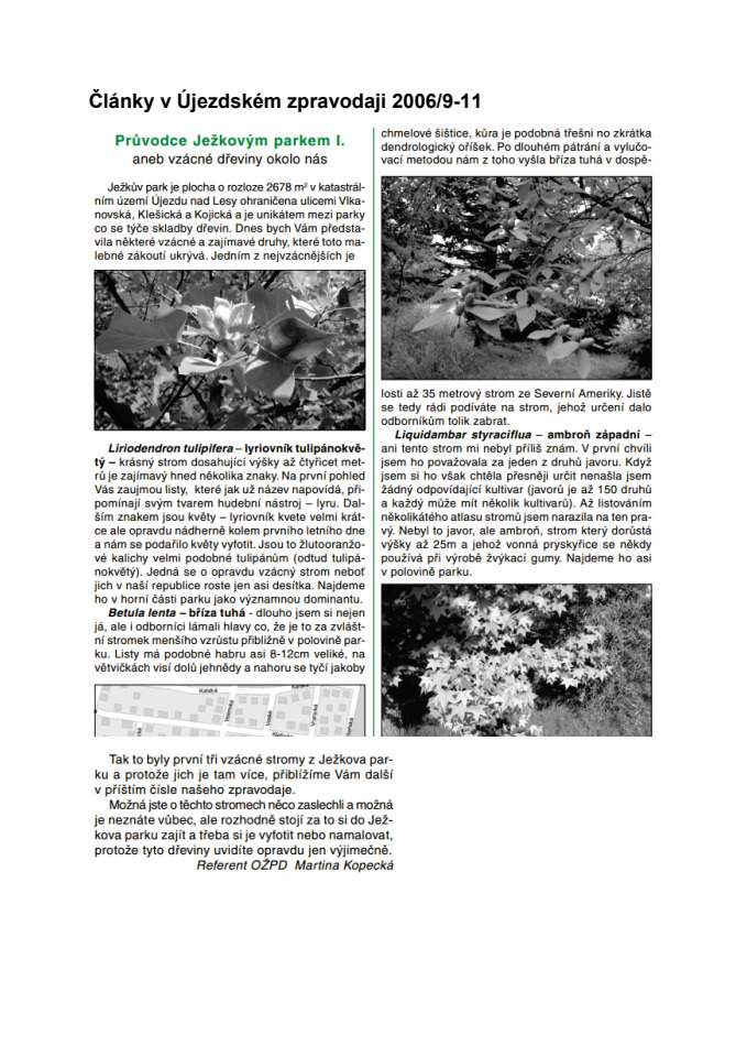 Články o Ježkově parku v Újezdském zpravodaji 9-11/2006: