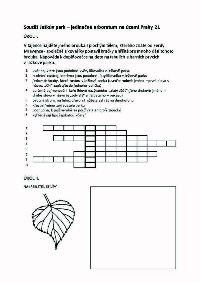 K příležitosti otevření parku vznikla doplňovačka, která je součástí této stránky. Nápovědu k ní najdete na tabulích a herních prvcích v Ježkově parku a za její vyplnění si můžete v knihovně vyzvednout originální omalovánky s tipy na výlety dětí z Rohožníku například na Hrad Kočka v parku v Dolních Počernicích.