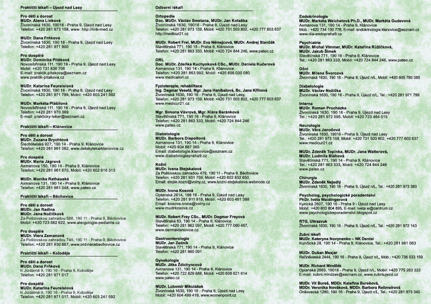 Brožurka zdravotní péče v MČ Praha 21, platná k 1.9.2017
