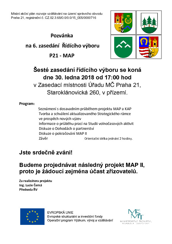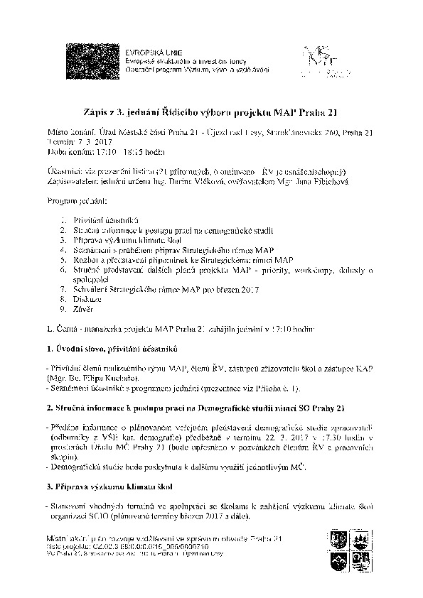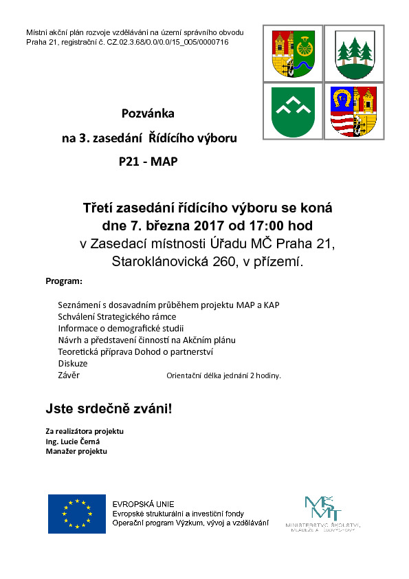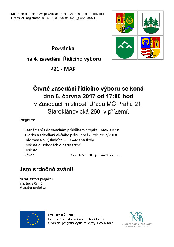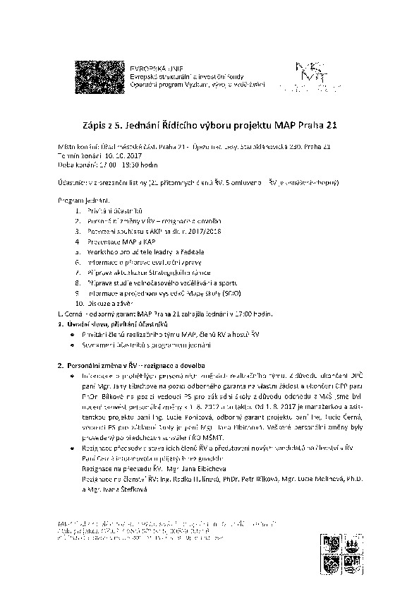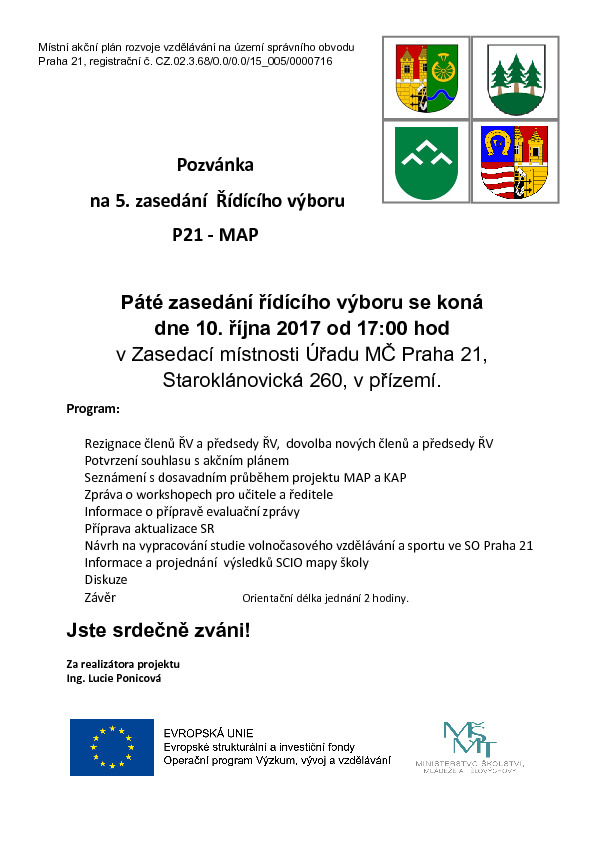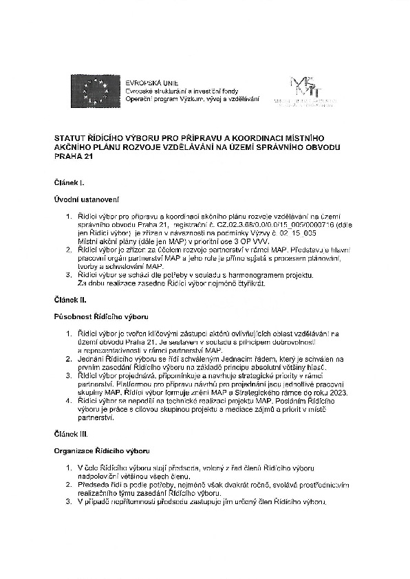 Poslední změna: 17. 1. 2018, 15:20:31, velikost: 374.19 KBStatut řídícího výboru pro přípravu a koordinaci místního akčního plánu rozvoje vzdělávání na území správního obvodu praha 21.pdf