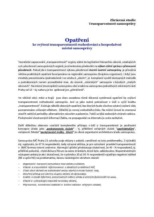 Poslední změna: 08. 9. 2017, 08:05:41, velikost: 850.78 KBOpatření ke zvýšení transparentnosti rozhodování a hospodaření místní samosprávy