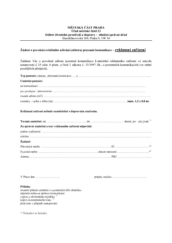 Poslední změna: 04. 8. 2014, 14:35:49, velikost: 217.6 KBŽádost o povolení zvláštního užívání komunikace, zábor - inženýrské sítě_Internídoc.pdf