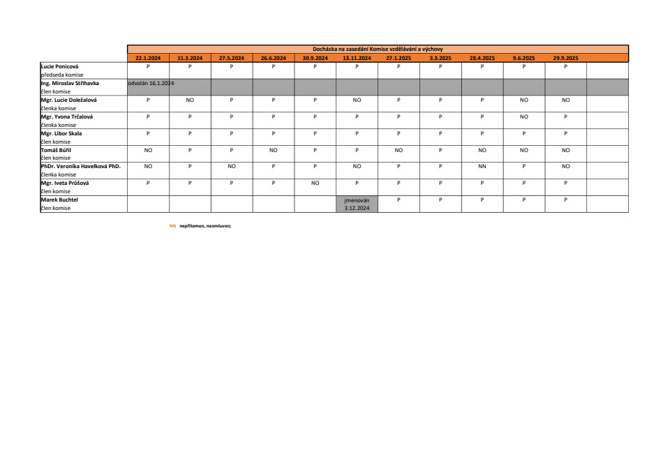 Přehled docházky: