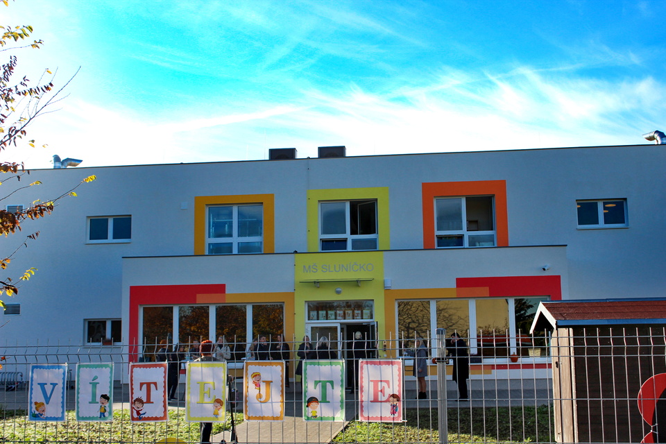 Mateřská škola sídlí ve 3. patře budovy ZŠ Masarykova. Do areálu ZŠ se vstupuje jednokřídlou brankou (šířka 108 cm), která se otevírá mechanicky směrem dovnitř. Zvonková signalizace (výška 132 cm) je umístěna vpravo u branky. Prostranství před budovou má asfaltový povrch a mírný sklon (až 4 %). Před hlavním vstupem je krátké schodiště (+3 schody). Nevhodný vyrovnávací nájezd po levé straně schodiště má hrubý povrch a prudký sklon (až 36 %). Dvoje totožné dveře hlavního vstupu do objektu jsou dvoukřídlé (hlavní křídlo šířka 84 cm, vedlejší křídlo šířka 90 cm) a otevírají se mechanicky směrem ven. Zvonková signalizace (výška 139 cm) je umístěna vpravo u dveří nad schodištěm. Vedlejší bezbariérový vstup je k dispozici vpravo od vstupu hlavního. Uzamčené vstupní dveře jsou dvoukřídlé (hlavní křídlo šířka 84 cm, vedlejší křídlo šířka 90 cm) a otevírají se mechanicky směrem ven. Zvonková signalizace u dveří chybí, příchod je nutné ohlásit zvonkovou signalizací u vstupní branky do areálu školy.