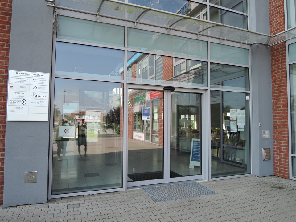 Ordinace se nachází ve 2. patře komplexu Centrum Blatov. Komunikace v okolí centra jsou tvořeny převážně kvalitní zámkovou dlažbou. Dvoukřídlé dveře hlavního vstupu se otevírají automaticky do stran. Šířka průjezdu je dostatečná. Zvonková signalizace (výška 108 cm) je umístěna vpravo u dveří.