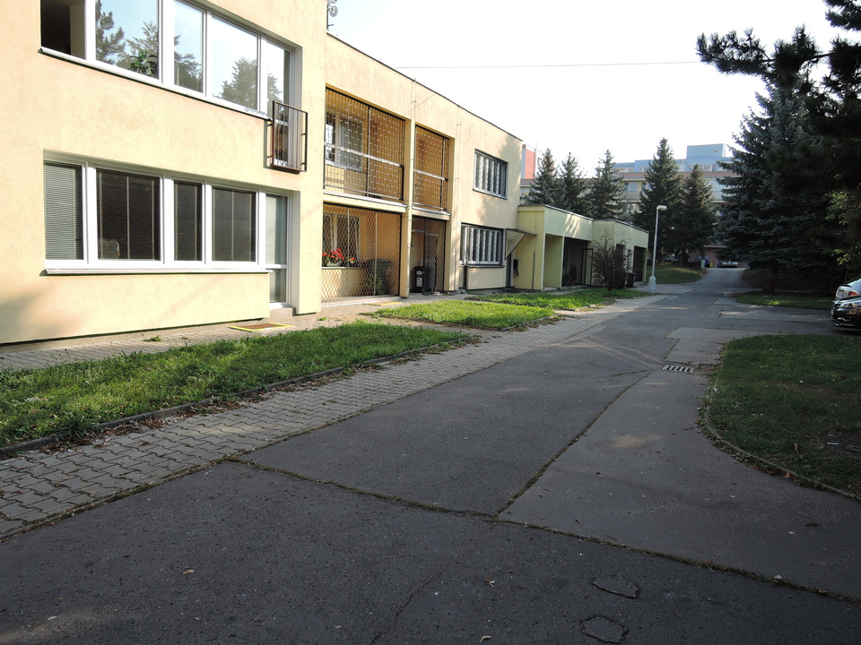 Ordinace se samostatným vstupem se nachází v areálu lékařských ordinací u Zdravotnického střediska Rohožník. Komunikace v okolí mají převážně asfaltový povrch s místními nerovnostmi. Přístupový chodník do areálu je v mírném sklonu (podélný sklon 5 %, příčný sklon 3 %), vede k jednokřídlé brance (šířka 87 cm), za níž pokračuje po rovině ke vstupu do ordinace, která se nachází v zadní části budovy. Před vstupem je bezpečnostní mříž s brankou (šířka 91 cm). Vstupní dveře objektu jsou jednokřídlé (šířka 70 cm) a otevírají se mechanicky směrem ven. Z chodby (šířka 109 cm), v níž je umístěná toaleta, vedou do čekárny další jednokřídlé dveře (šířka 79 cm), které se otevírají mechanicky směrem do čekárny.