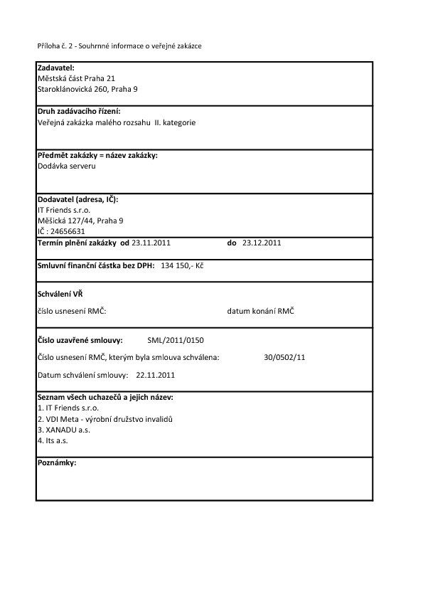 Veřejná zakázka malého rozsahu - dodávka serveru