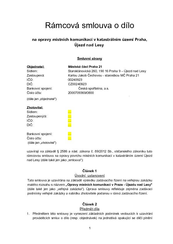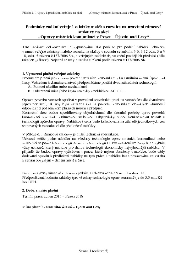 Tento článek je již archivován a informace zde uvedené již nemusí být aktuální!VZMR- Opravy místních komunikací v Praze - Újezdu nad Lesy